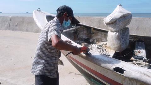 一、视频内容:渔民吃瓜,画风清奇
